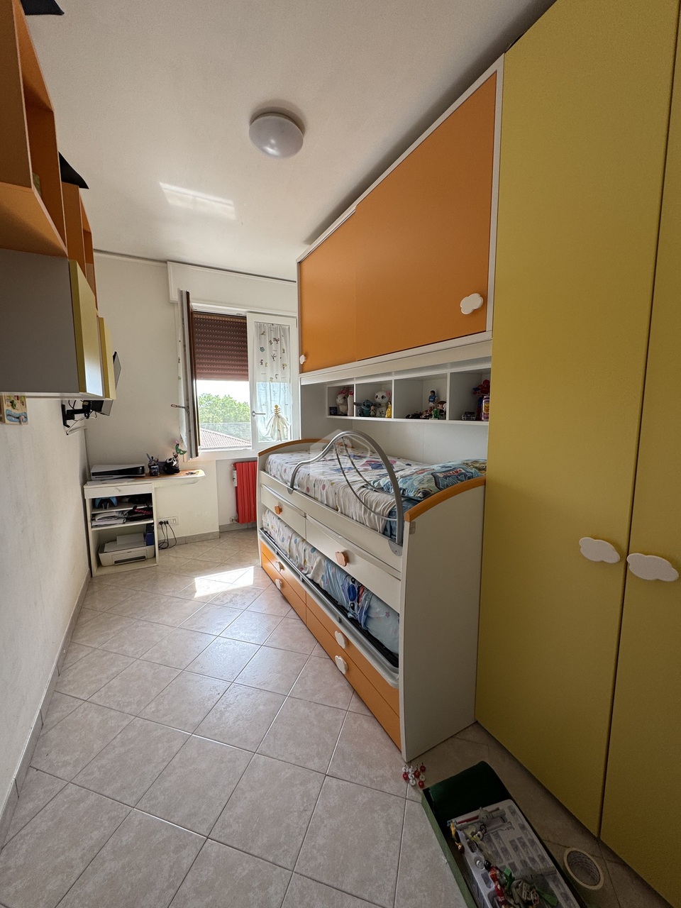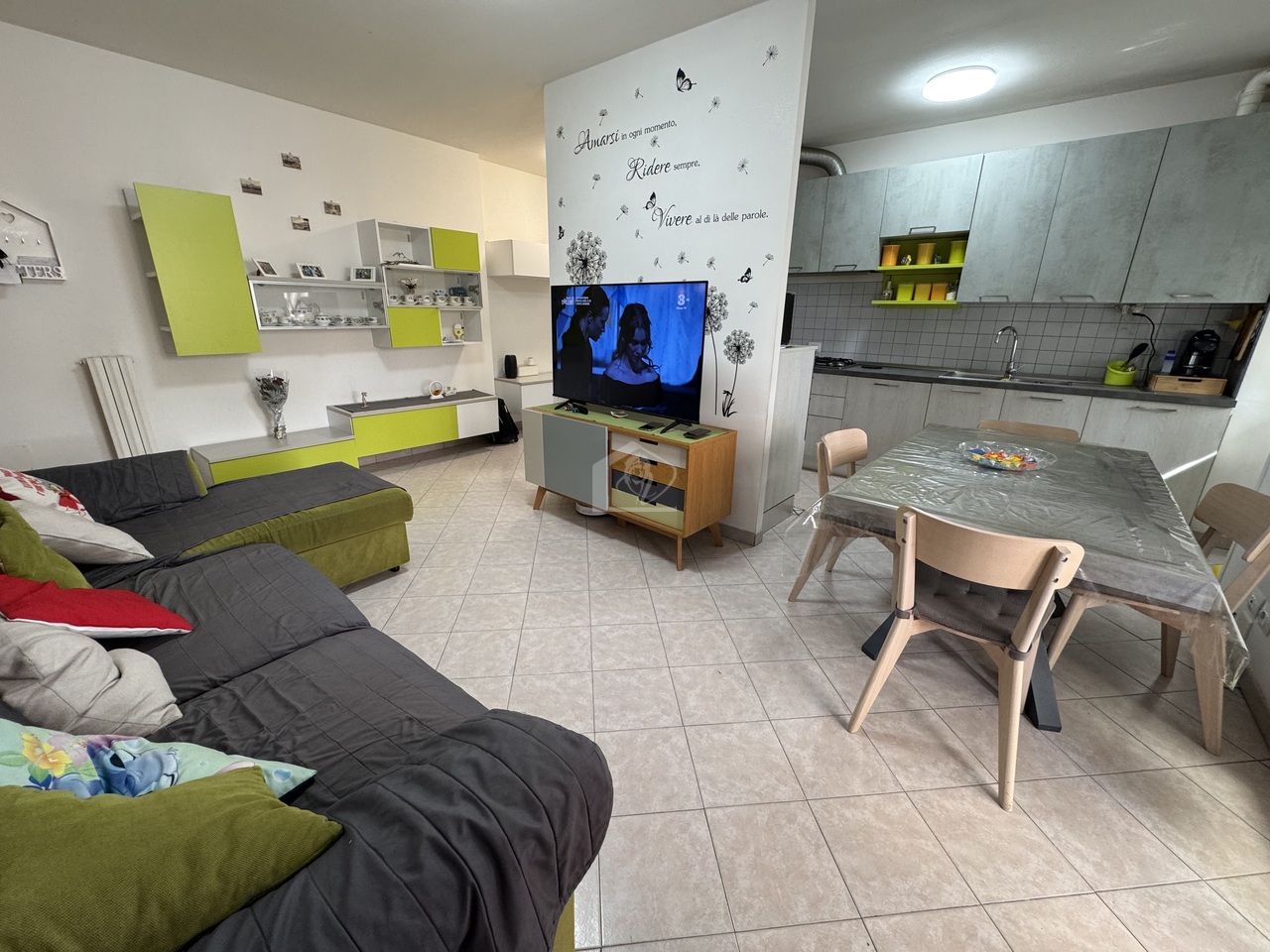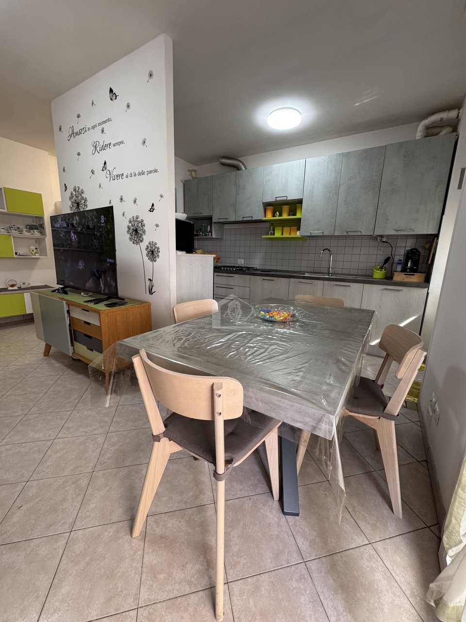 soggiorno con cucina open space e affaccio sul balcone, disimpegno zona notte, 1 camera da letto singola, 1 camera da letto matrimoniale, bagno con doccia e autorimessa.