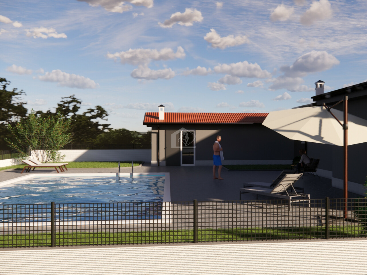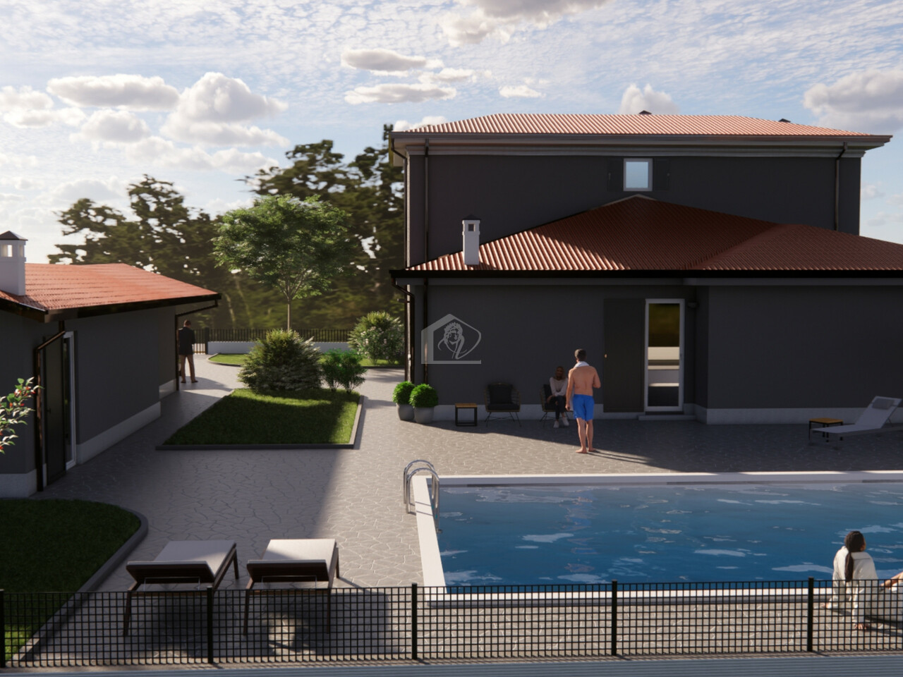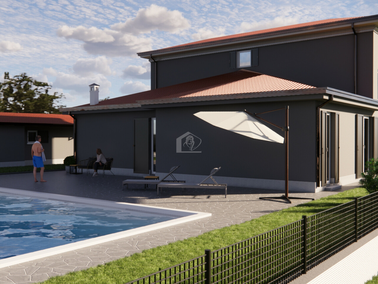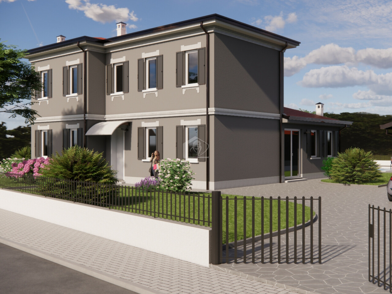 Giardino recintato, area verde e area pavimentata, autorimessa, basso rustico ad uso dependance, possibilita' di piscina esterna e interrata.