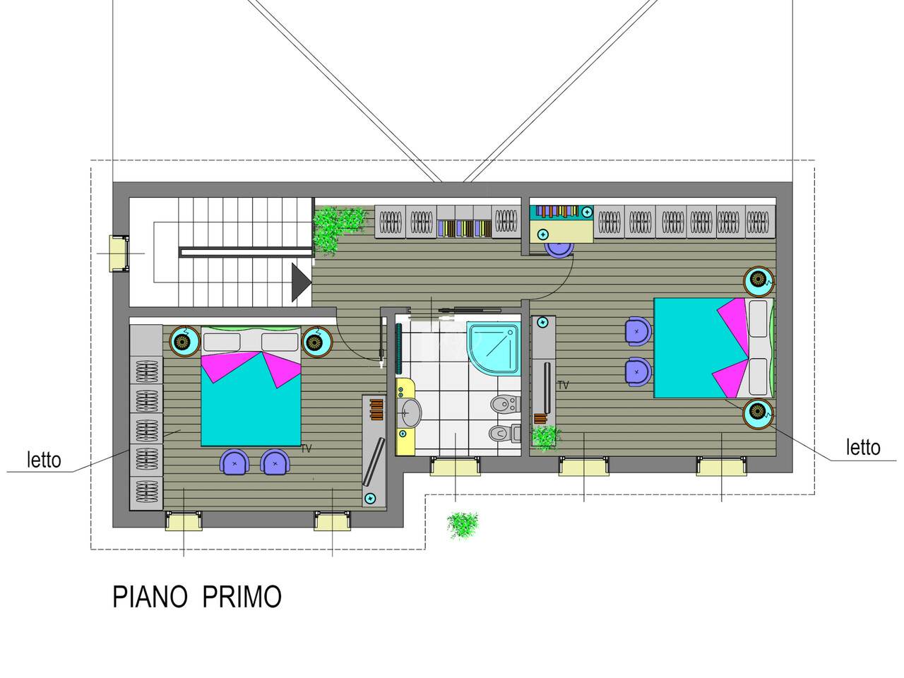 al piano primo da 2 camere da letto matrimoniali, bagno e disimpegno.
