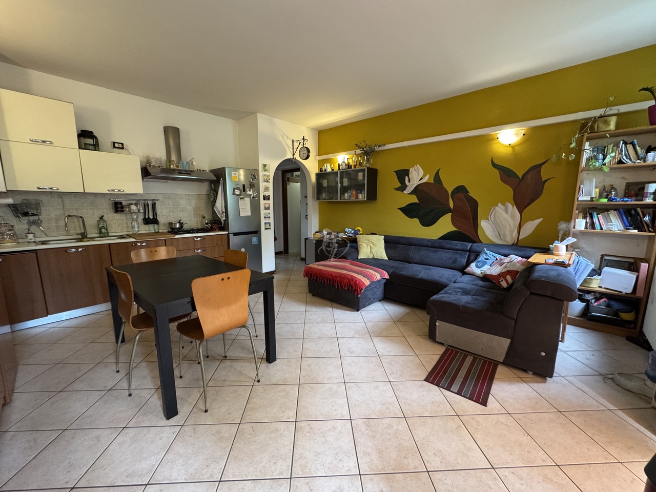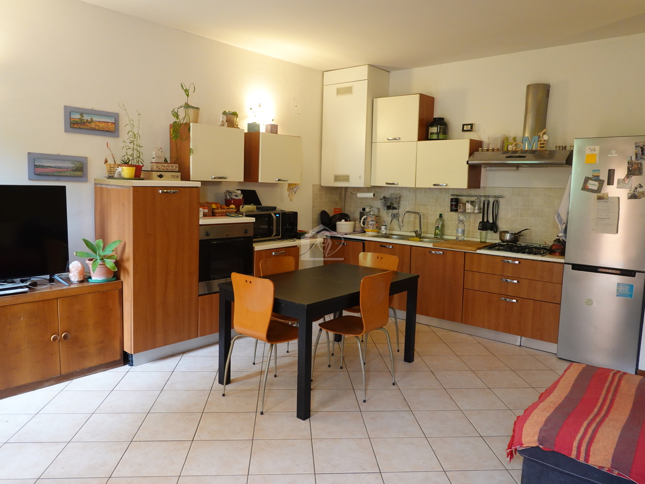 soggiorno con angolo cottura, disimpegno, 2 camere da letto di cui una con predisposizione a cucina, ripostiglio, bagno e giardino privato di circa 60 mtq2 recintato con cancello e posto auto.