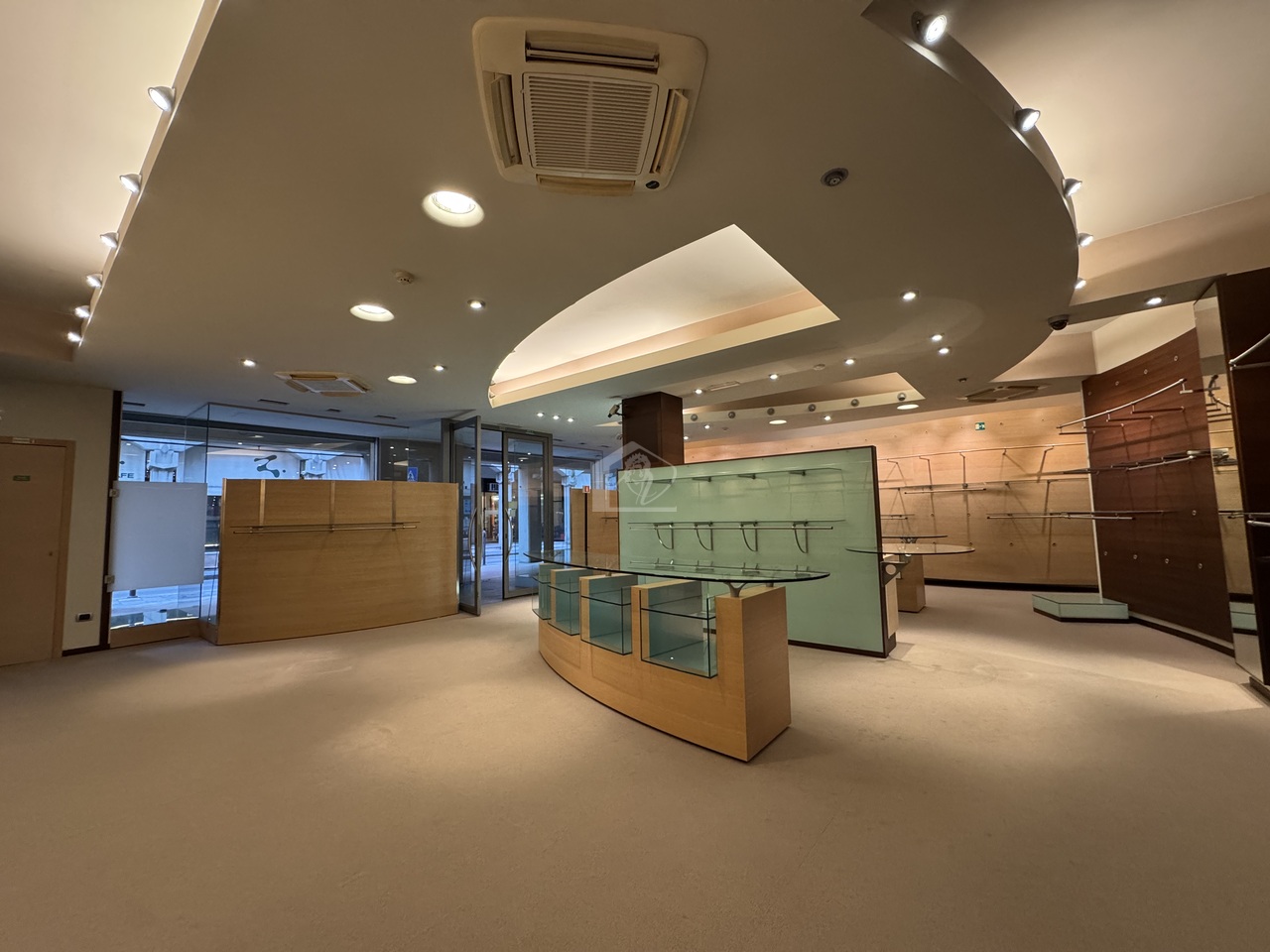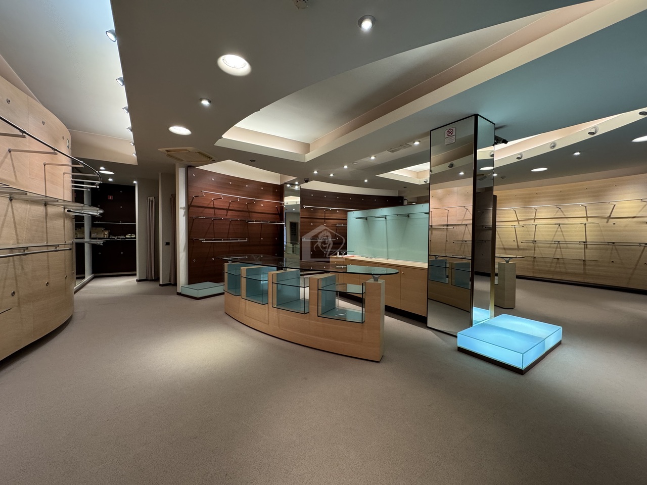In vendita o in affitto a Suzzara elegante locale commerciale con destinazione d'uso negozio, situato al piano terra con vetrine fronte strada con generoso passaggio sia pedonale che di auto in zona centralissima di Suzzara, gia' libero e allestito pronto per essere avviato per nuova attivita' commerciale, con servizio e magazzino sul retro.