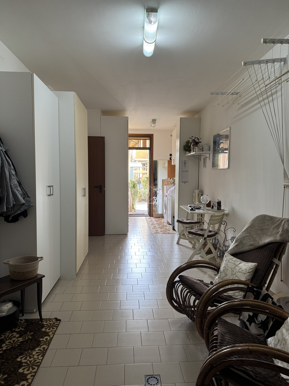 al piano terra da ingresso in soggiorno, cucina abitabile, bagno, disimpegno, ripostiglio, garage ampio con zona lavanderia e giardino fronte/retro;